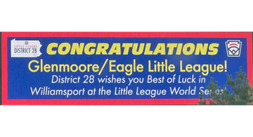 Exton — Let’s rally! On Thursday, August 14 at 7 PM, Iron Hill Brewery is hosting a Give 20 Watch Party for our very own Glenmoore Eagle Little League as they take on the nation at the Little League World Series. We’re “Pitching in 20” — Iron Hill will donate 20% of all checks during the game to GEYA Little League!!!